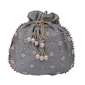 Kuber Industries Silk 1 Piece Women Potli Bag (Grey) -CTKTC7261