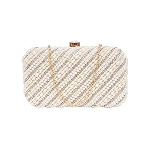 FABBHUE Women’s White and Gold Beaded Hand Embroidered Wedding and Party Box Clutch Bag