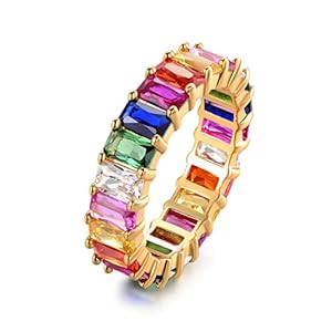 Barzel 18K Gold Plated Emerald-Cut Multi Color Created-Gemstone Eternity Ring