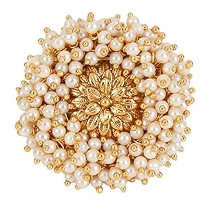 I Jewels 18k Gold Plated Traditional White Kundan & Pearl Studded Adjustable Finger Ring for Women (FL205)
