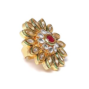 Peora Traditional Gold Plated Meena Work Kundan Pearl Adjustable Ring for Women Girls