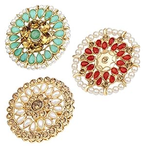 Kord Store Gold Plated Statement Moti Rings Combo For Women & Girls
