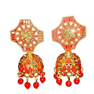 Indian Style Gold Plated Brass Peach Jhumka Dangle Drop Earrings for Women