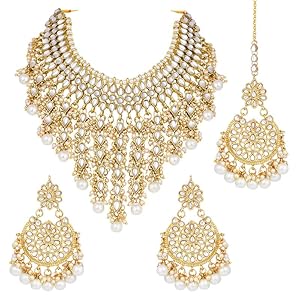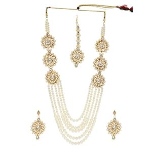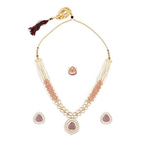 Peora Kundan Faux Pearl Necklace & Jewelry Set Gift for Women