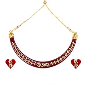Peora Original Handcrafted Enamel Choker Necklace with Earrings Jewellery Set for Women
