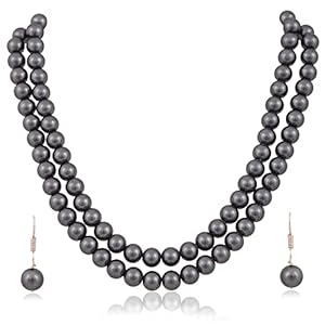 Ratnavali Jewels Imitation Pearl 10MM Bead Size Double Strand Necklace Pearl Moti Mala Jewellery Set with Earrings for Women Girls