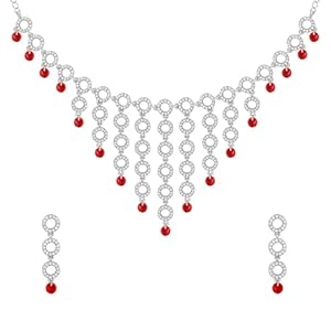 SAIYONI Womens Dazzling Silver Plated Austrian Diamond Choker Necklace Set