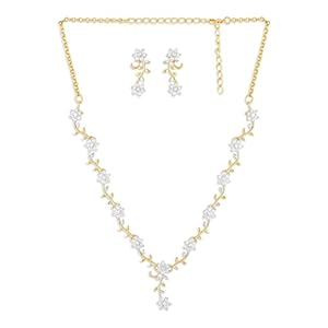 ZAVERI PEARLS Sparkling CZ Diamond with Leafy Design Necklace Set For Women – ZPFK5425