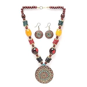 Shining Diva Fashion Latest Stylish Traditional Tibetan Pendant Necklace Jewellery Set for Women