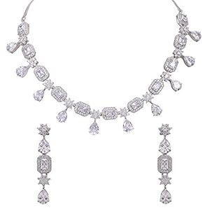 Atasi International Princess Style AD Crystals/Stones Necklace with Earrings Jewellery Set for Women/Girls – Wedding Jewelry/Party & Festival Accessories