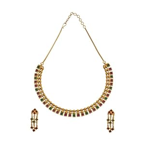 Kushal’s Fashion Jewellery Ruby-Green Gold Plated Ethnic Antique Necklace Set – 412525