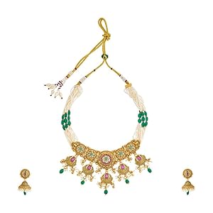 I Jewels Traditional Royal Kundan Pearl Stone Multistrand Design Green Choker Necklace Jewellery Set With Earrings For Women (ML336WG)