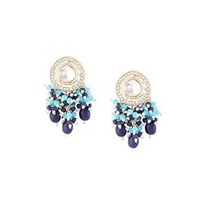 Zaveri Pearls Turquoise & Blue Cluster Beads Embellished Kundan Traditional Drop Earring For Women-ZPFK15640