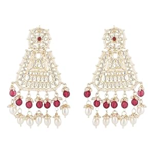 Gehena by Estele Gold Plated Elegant Kundan Studded Drop Earrings with Beaded Pearls for Girls and Women