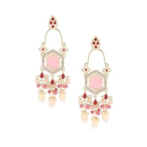 Zaveri Pearls Pink Kundan Austrian Diamonds & Beads Dangle Ethnic Earrings For Women – ZPFK1194