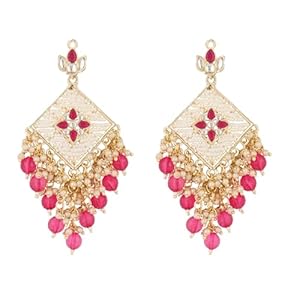 Zaveri Pearls Pink Stones Kundan & Beads Dangle Ethnic Earring For Women -ZPFK16183