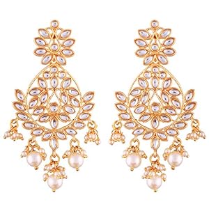I Jewels 18K Gold Plated with Stunning Antique Finish Encased with Kundan & Faux Pearl Chandbali Earrings for Women/Girls