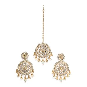 ZAVERI PEARLS Gold Tone Traditional Kundan & Pearls Earring & Maangtikka Set For Women-ZPFK7480