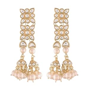 Sukkhi Ethnic Brass Pearl Gold Plated Kundan Meenakari Jhumki Earring for Women (SKR56862, Multicolour)
