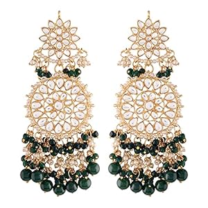 I Jewels 18K Gold Plated Zinc Alloy Matte Finish Kundan and Pearl Work Chandbali Earrings for Women