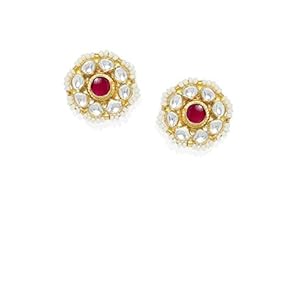 Zaveri Pearls Gold Tone Kundan & Pearls Circular Stud Earring For Women-ZPFK9082