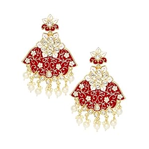 Fabula by OOMPH Jewellery Red Meenakari & Kundan Pearls Floral Large Ethnic Drop Earring For Women & Girls Stylish Latest