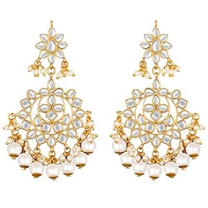 Peora Kundan Pearl Studded Ethnic Chandbali Earrings Gift for Women