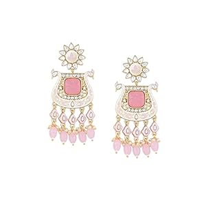 Zaveri Pearls Pink White Meenakari Peacock Inspired Kundan Dangle & Drop Earrings For Women-ZPFK15646