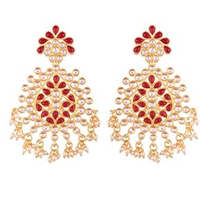 I Jewels Gold Plated Intricately Designed Traditional Earrings Red Enamel Glided With Kundans & Pearls