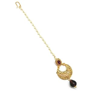 Om Jewells Bridal Jewellery Gold Plated Maang Tikka Studded With Kundan Stones For Girls And Women MT1000604