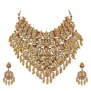 Shining Diva Fashion Latest Stylish Choker Traditional Temple Necklace Jewellery Set for Women (12086s), Golden, One
