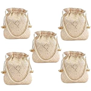 DUCHESS Women’s Gota Patti Golden Potli Bag Purse with Pearl Handle (Pack of 5)
