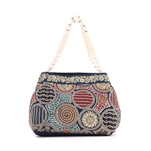 Priyaasi Navy Blue Multicolor Thread embroidery Design Potli Bag