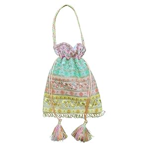 FILORA Women’s Silk Ethnic Rajasthani Bridal Potli Bag (Multicolour) -Combo of 3