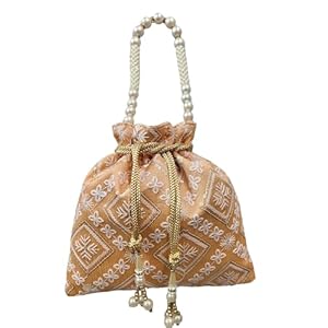 EK PAHECHAN Women’s Handmade Heavy Lucknowi Embroidery Work Potli Bag with Pearl Tassels Handle