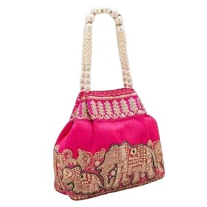 Women’s Silk Wedding Potli Bag with Elephant Desgin, Handcraft Potli Bag | Embroidery Red Handbag for Party, Wedding, Festive for Ladies