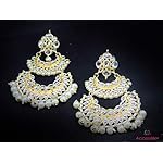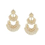 Accessher Gold Plated Traditional Chandbali Style Kundan and Pearls Embedded Statement Dangle Earrings with Push Back Closure for Women and Girls