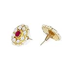 ACCESSHER jewellery Floral Gold Plated Medium Size Jadau/Pachi Kundan Post and Back closure Studs earrings for Women and girls pair of 1