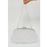 This is a beautiful pearl bridal clutch bag, it’s perfect for keeping your bridal essentials. There are two straps. It does come with a detachable shoulder long strap so it can be used as a crossbody purse! And a short sliver strap, you can use it for handbag. Removing the straps makes a perfect clutch and evening bag, and can be used it for many events. You can change it as your own needs. This is the perfect accent purse to go with any outfit! The color combo is pretty and it looks really stylish. Best choice for beach, party, shopping, traveling or other daily use. It has a simple black inner lining & plenty of room, there is a lot of space in the inside to hold essentials phone, lipstick etc. Perfect for any occasion like dinner,church,summer night, beach, wedding.A pretty gift for yourself, mother, daughters, lover, and other female friends.