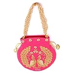 APRATIM Silk Women’s/Girl’s Dual Peacock Work Potli Hand Bag-8