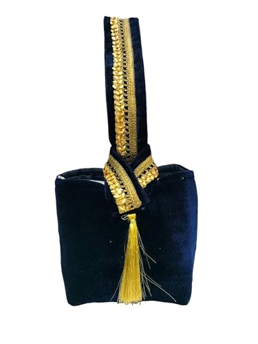 athizay Ethnic Handbags for Women Velvet potli bags Handcrafted Small Purse Bag Design (Dark Blue)