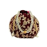 ATHZ Potli bag Velvet chocolate brown MATKA DESIGN for Women Wristlets Return Gifting handbags for Festivals Birthday wedding Purses