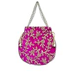 ATHZ Potli Bag Velvet Golden Work Wedding potli for Ladies Gift for Women Handbags Traditional Indian Wristlet with Drawstring Ethnic Embroidery Women Fashion Potli (Gold,Pink)