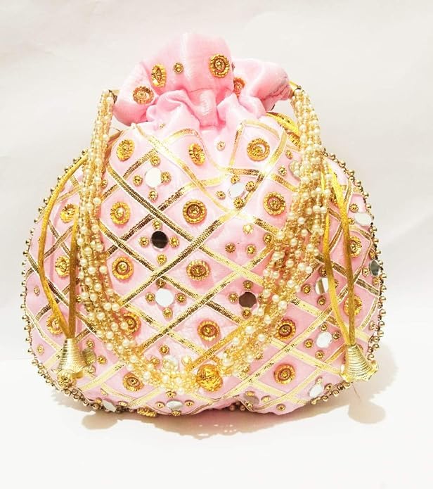 ATHZ Potli bags Mirror work for women pouches purses handbags tote bags Mirror fashion accessories (Baby Pink Light Mirror)