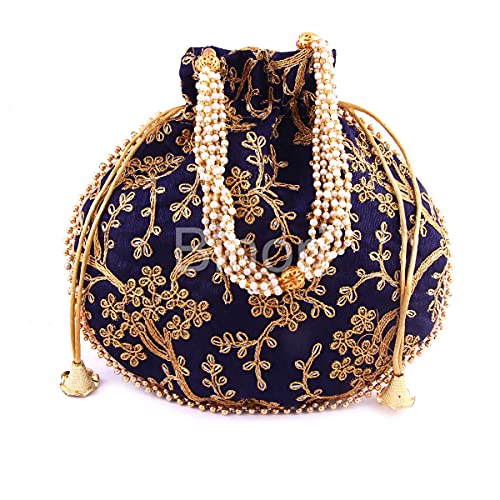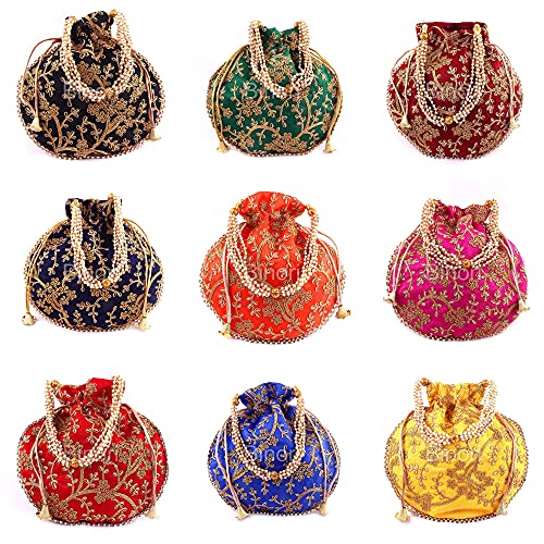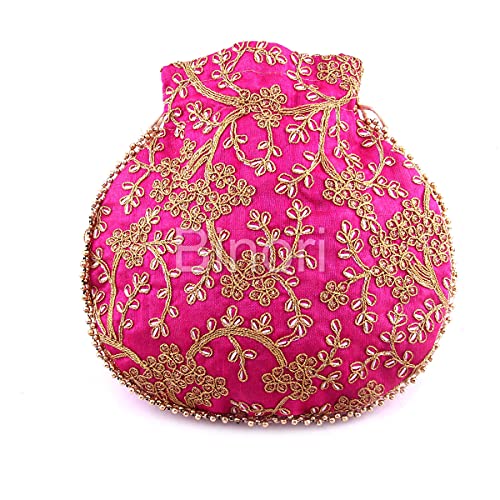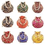 BINORI FASHIONS Rajasthani Style Royal Clutch Silk Batwa Bag Combo Khajoor Wristlets Ethnic Potli For Women’s Zari Work Bridal Combo