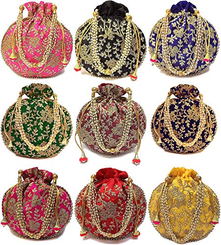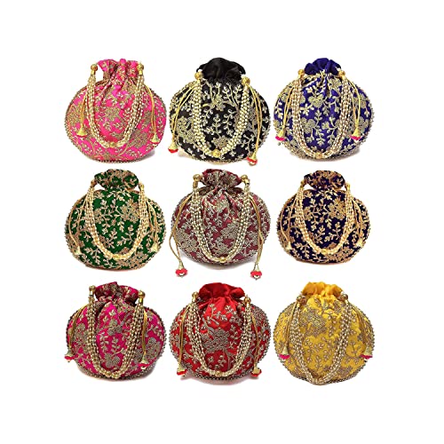 BINORI FASHIONS Rajasthani Style Royal Clutch Silk Batwa Bag Combo Wristlets Ethnic Potli Combo For Women’s Zari Work Potli Combo Bridal Potli Combo