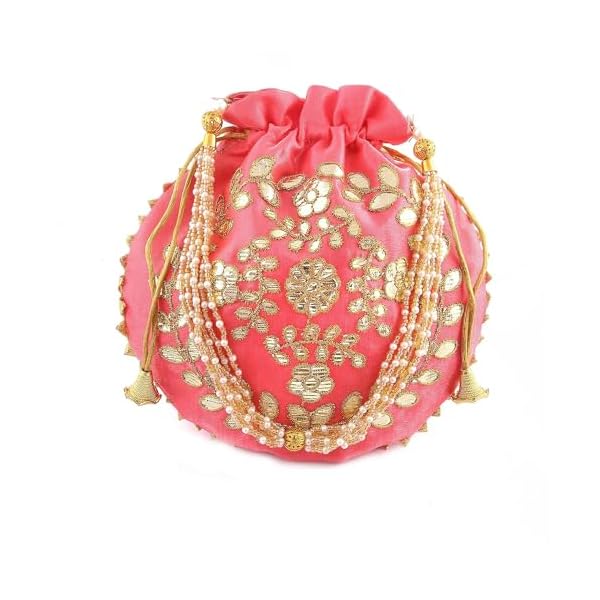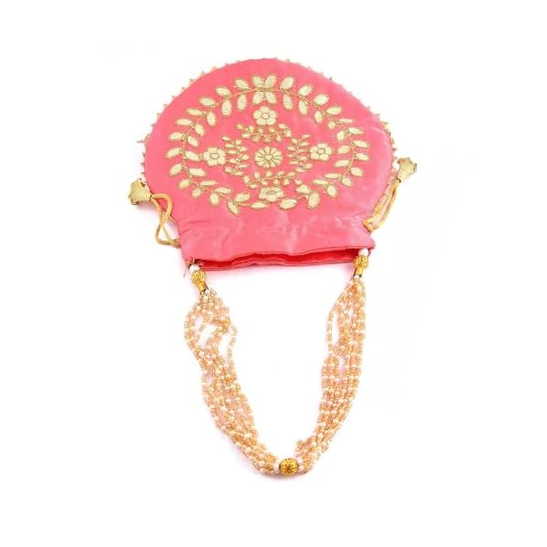 BOHEKANT Silk Women’s/Girls Beautiful Ethnic Rajasthani Gota patti Work Potli Bag (Peach)