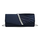 Charming Tailor Evening Handbag Crystal Embellished and Pleated Satin Clutch
