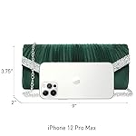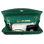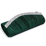 Women’s Satin Pleated Flap Clutch Evening Bag Purse with Silver Chain Strap. Size is approx. 9″W x 3.75″H x 2″D. The lovely pleated clutch has an elegant crystal accent along with a traditional pleated style. You will stand out from the crowd at your big event if you wear this sparkly clutch with your classy formal attire. open top pouch pocket along the inside back wall. removable shoulder strap available.