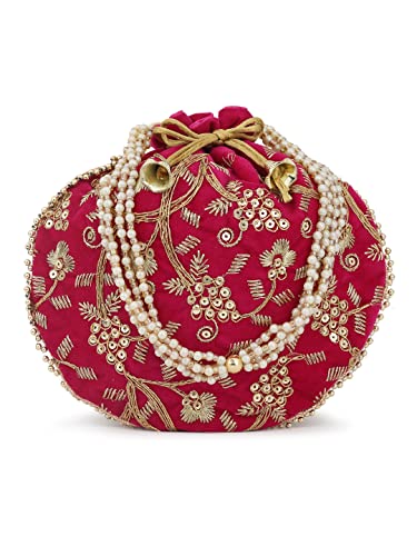 This product is a combo of tow Embellished potli bags having wrist loop 1 main compartment each with drawstring closure. Size & Fit Size of each potli bag : 9 x 9 x 3 Inch (Length x Width x Depth ) Material & Care Fabric Wipe with clean, dry cloth